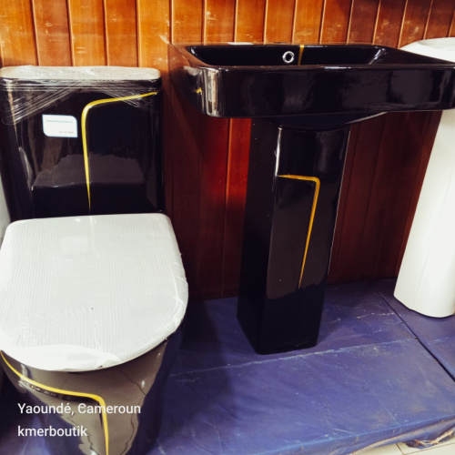 L’ensemble sanitaire noir composé d’un WC monobloc et d’un lavabo sur colonne apporte une touche luxueuse et contemporaine à votre salle de bain ou espace sanitaire. Sa finition noire brillante avec détails décoratifs offre un rendu haut de gamme, tout en garantissant confort, hygiène et durabilité.