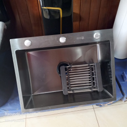 Évier de cuisine noir lourd 60 × 45 – Grand format & cuve profonde